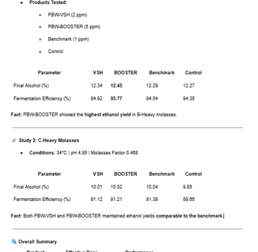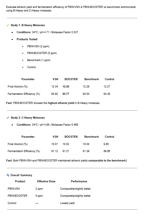 PBW’s virginiamycin effectively controls lactic acid bacteria (e.g., Lactobacillus spp.) that compete with yeast for sugar and reduce ethanol yields.